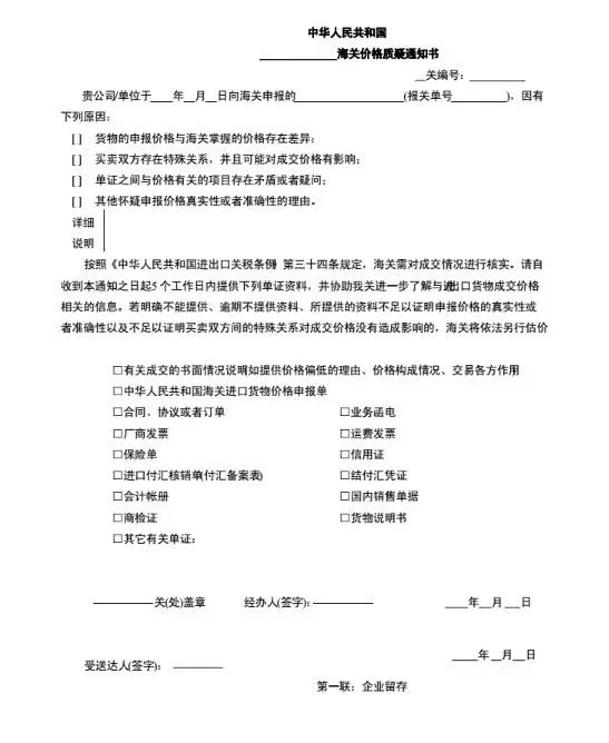 自收到《海關(guān)價格質(zhì)疑通知書》之日起5個工作日內(nèi),以書面形式提供相關(guān)資料(如提供價格偏低的理由、價格構(gòu)成情況、交易各方作用的情況說明,《中華人民共和國海關(guān)進(jìn)出口貨物價格補(bǔ)充申報單》,合同、協(xié)議或者訂單,業(yè)務(wù)函電,廠商發(fā)票,運(yùn)費(fèi)發(fā)票,保險單,結(jié)付匯憑證,貨物說明書等),以證明其申報價格真實(shí)、準(zhǔn)確或買賣雙方之間的特殊關(guān)系未影響成交價格。