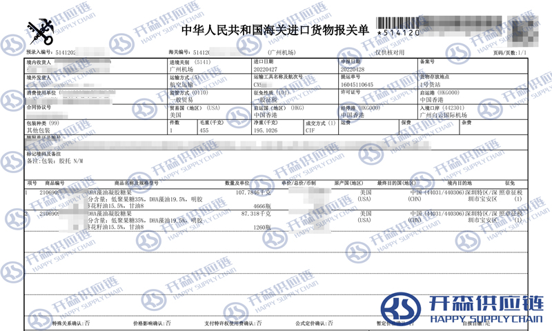 一、美國DHA藻油進(jìn)口報關(guān)代理案例詳情